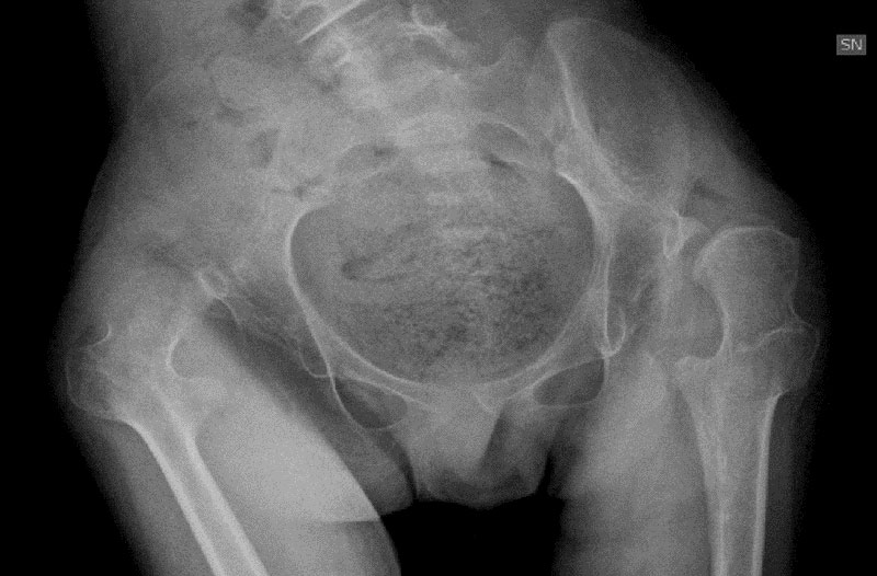- Osteotomy of the proximal femur to center the femur head within the acetabulum, which sometimes includes reconstruction of the acetabulum itself.